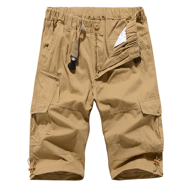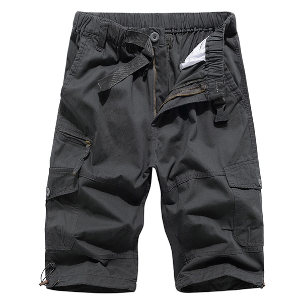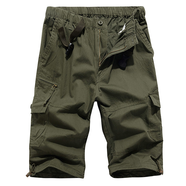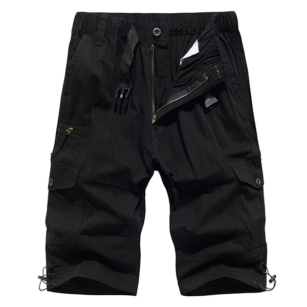 Fashion Solid Color Elastic Waist Men's Cargo Shorts