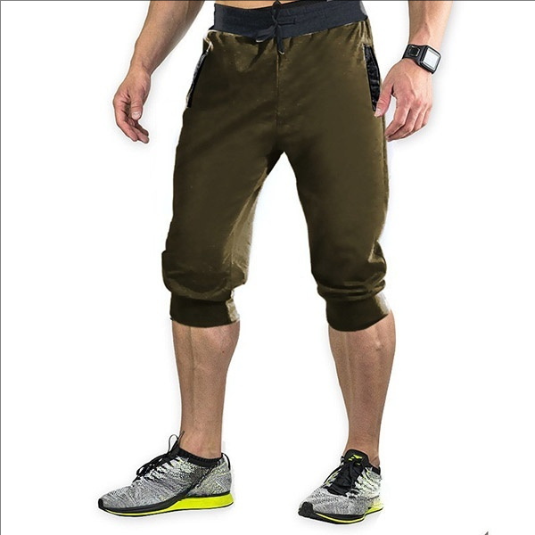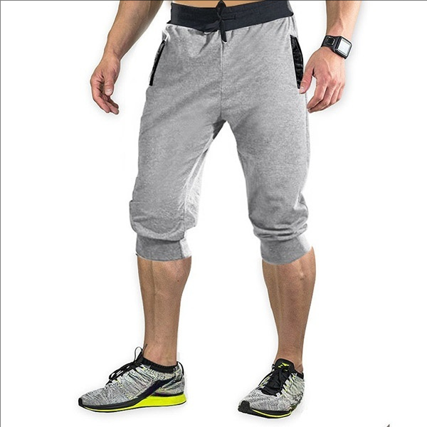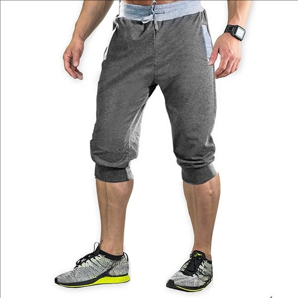 Fashion Solid Color Elastic Waist Men's Sports Cropped Pants