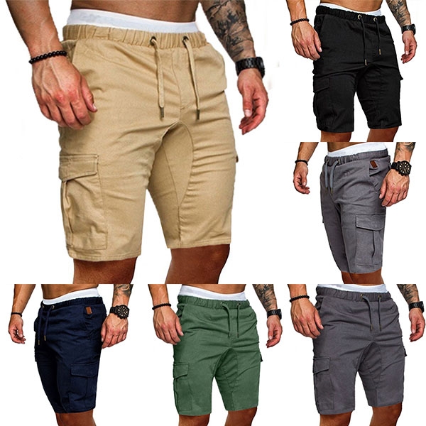 Fashion Solid Color Elastic Waist Side-pocket Men's Knee-length Shorts