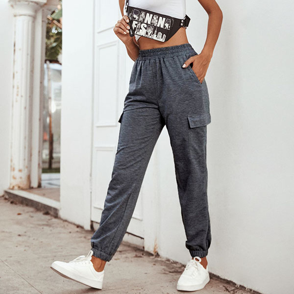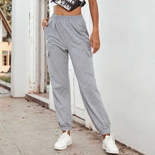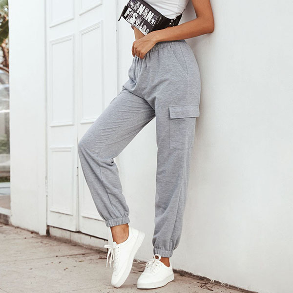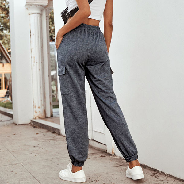 Fashion Solid Color Elastic Waist Side-pocket Sports Pants