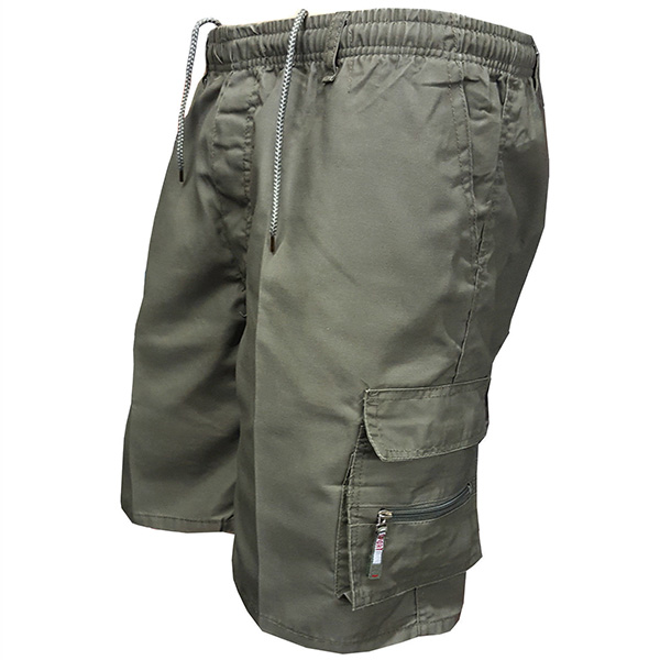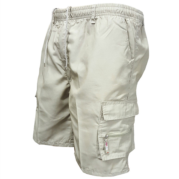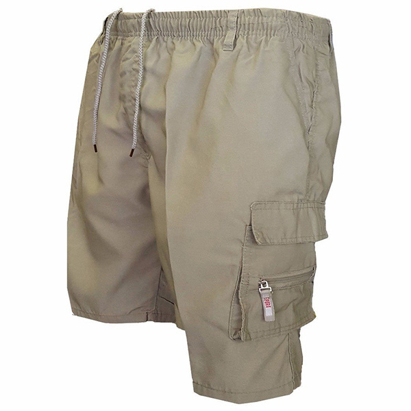 Fashion Solid Color Elastic Waitst Multi Pockets Man's Shorts