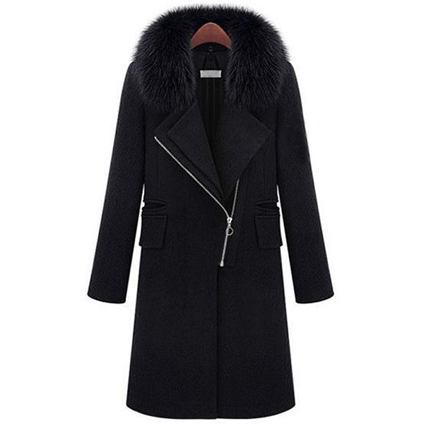 You have no need to what to wear for your cold winter days if you have this woolen coat in your wardrobe. It comes with a classic yet flattering black tone,the faux fur spliced collar and oblique zipper design make this piece look more distinctive. You can match it with your leggings and ankle boots for a charming winter look.