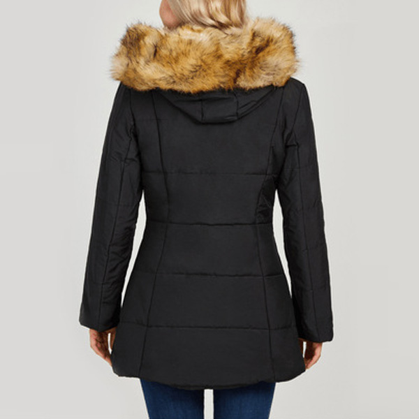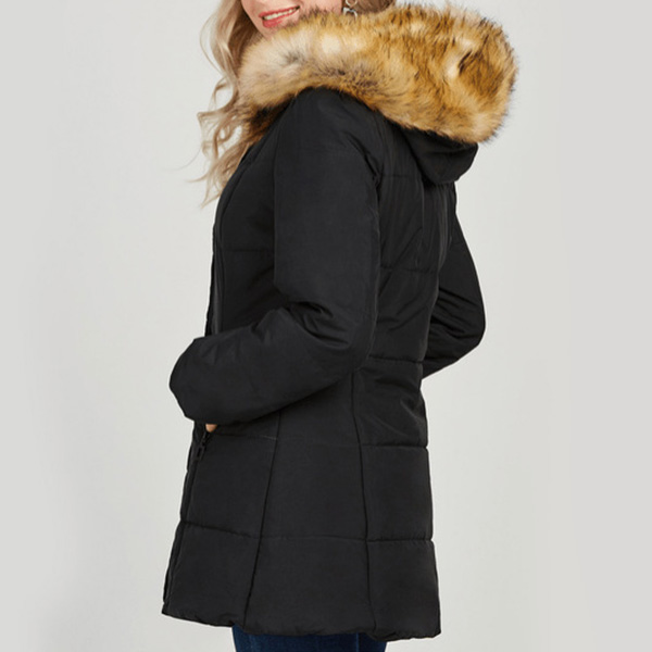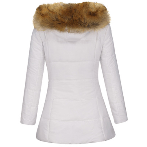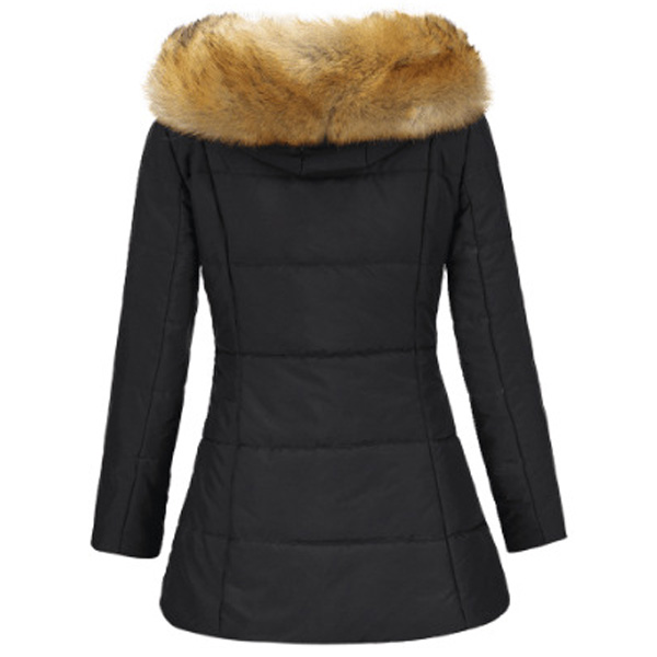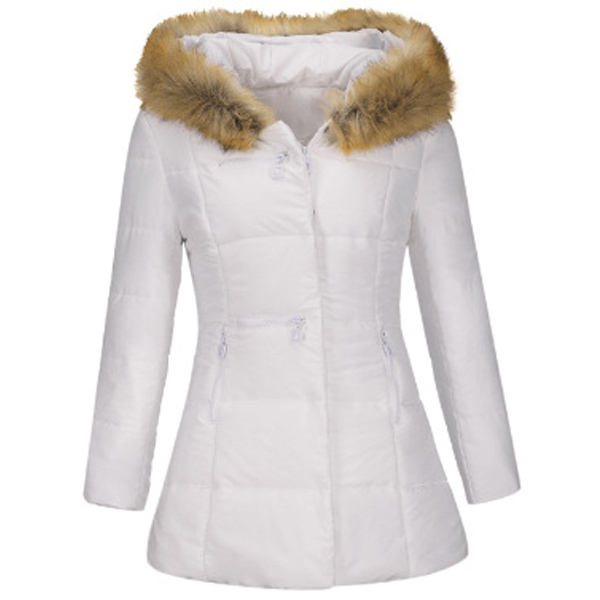 You can invite this padded coat to your wardrobe to greet the arrival of the winter days. Solid color tone design makes it look simple,stylish yet generous,while the soft fabric and faux fur spliced hooded silhouette design will ensure you a warm and comfortable day. Let it accompany you through the cold days.