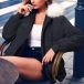 stylish yet generous,while the faux fur spliced hooded silhouette design not only can keep