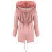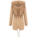 Fashion Solid Color Faux Fur Spliced Hooded Plush Lining Drawstring Waist Padded Coat