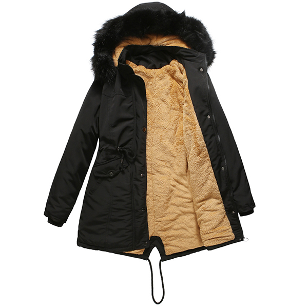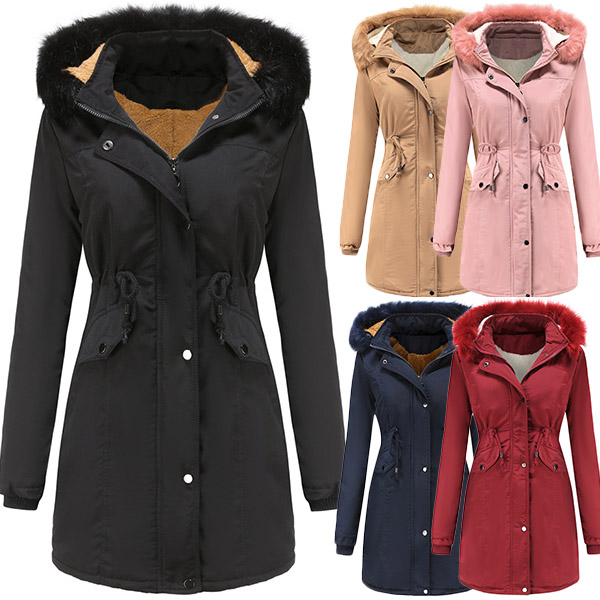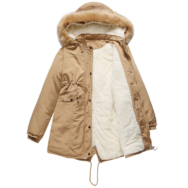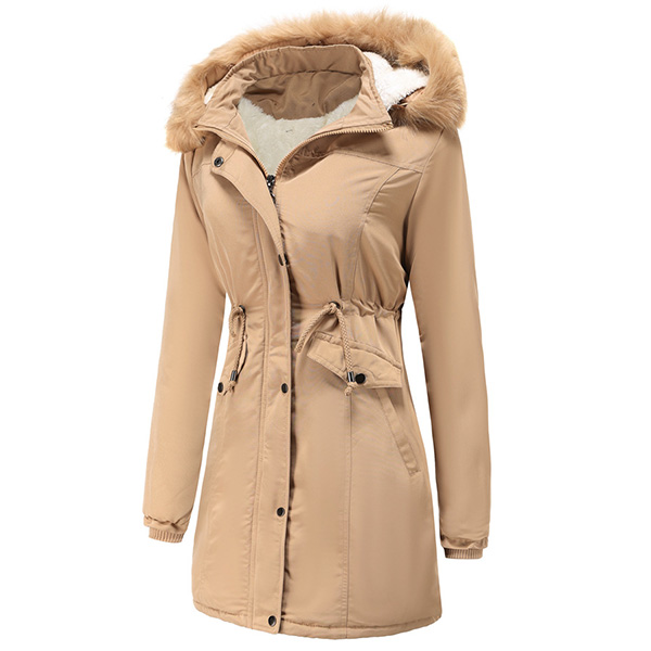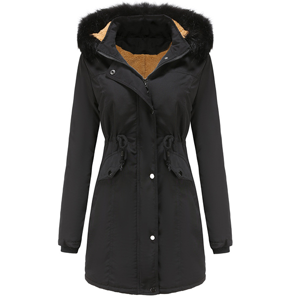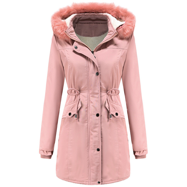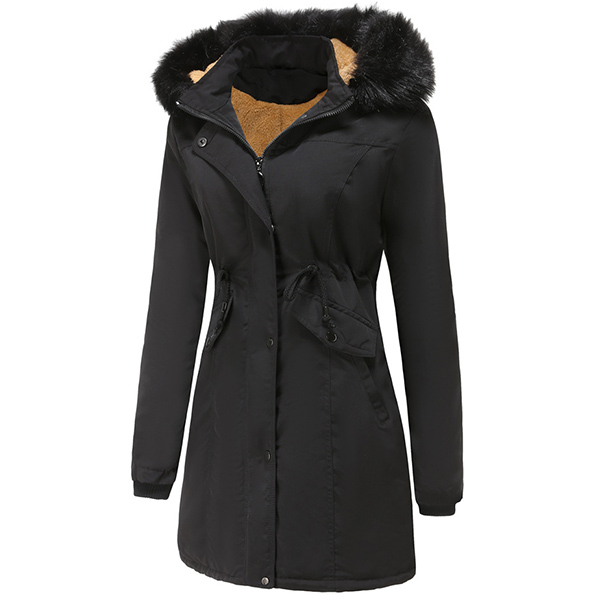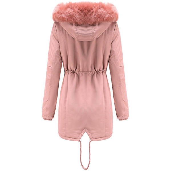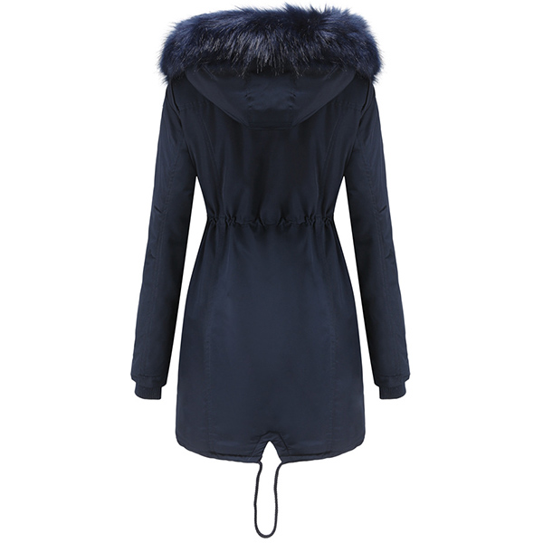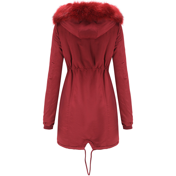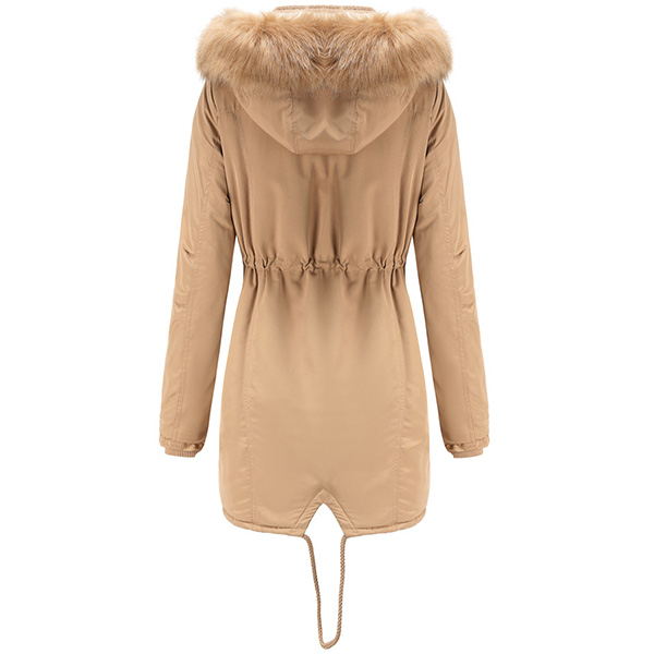 Give your winter wardrobe an update by adding this padded coat. Solid color style,the faux fur spliced hooded silhouette and plush lining design will ensure you a warm and comfortable day,while the drawstring waist design will help showcase your waistline and figure. So why not take interest in it?