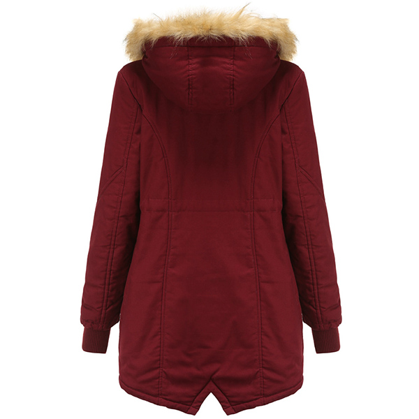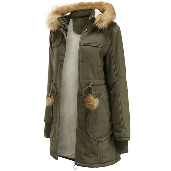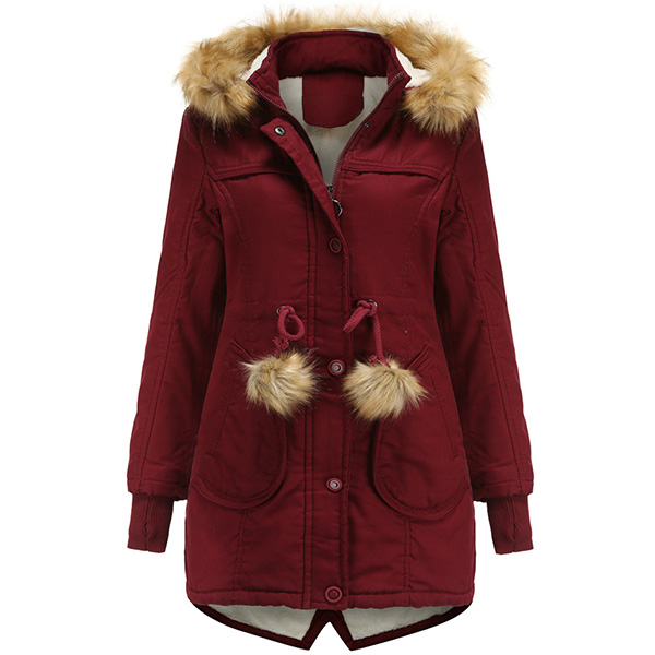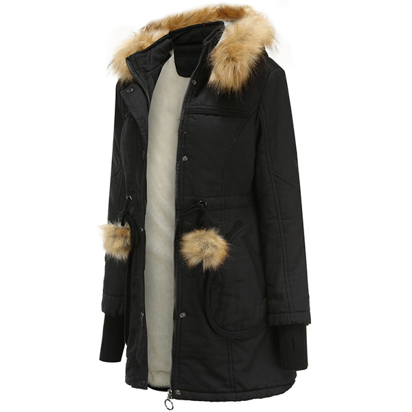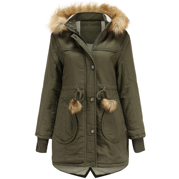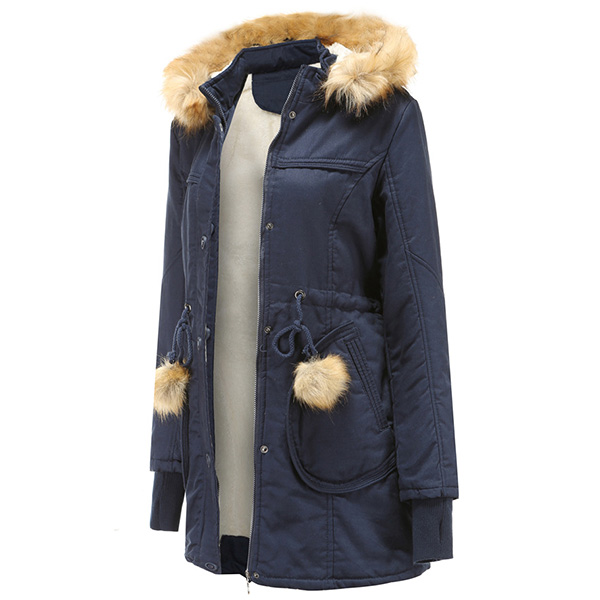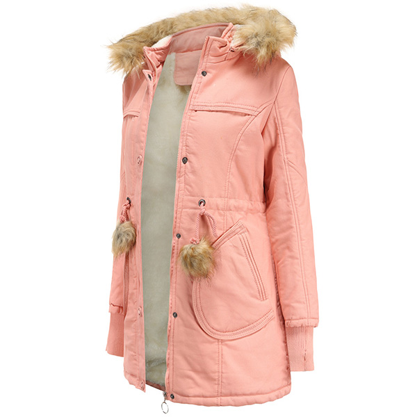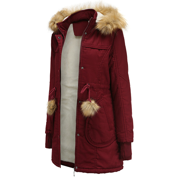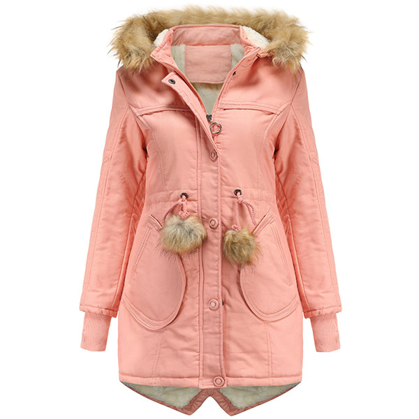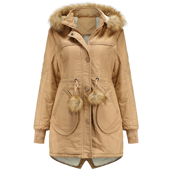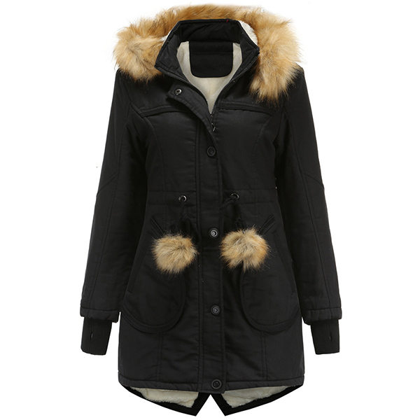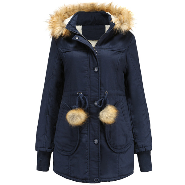 For your chilly winter days,this padded coat would be your wardrobe staple. Solid color style,the plush lining and faux fur spliced hooded silhouette design can ensure you a warm day,while the hairball design at the waist part will lend you a dash of playful vibes. You can trust in this padded coat to have a wonderful winter!