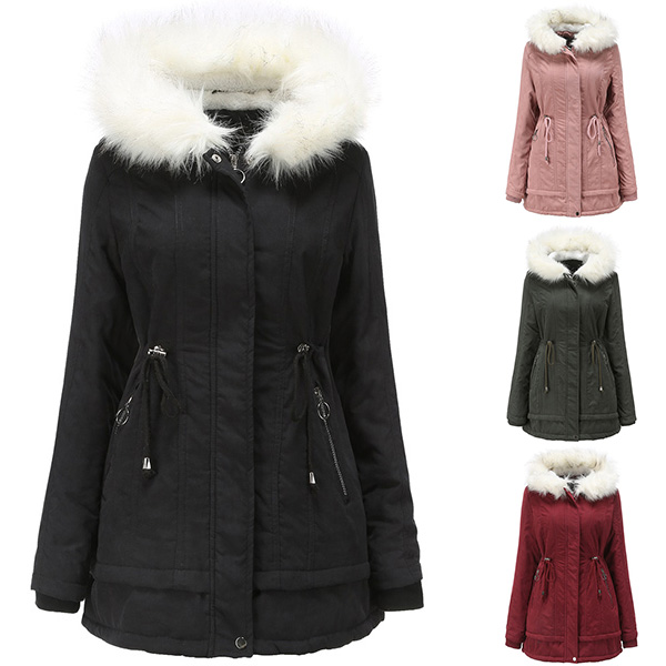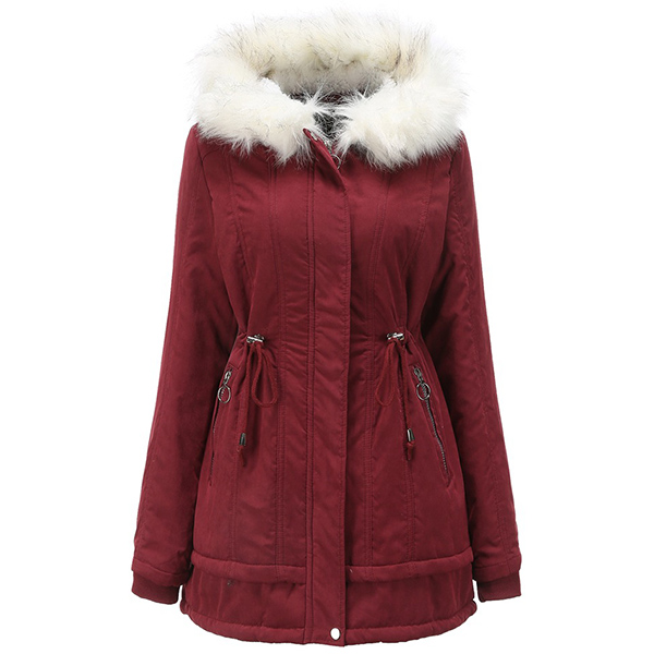 You can get yourself prepared for the chilly winter days with this padded coat. It comes with a solid color,the faux fur spliced hooded silhouette and plush lining design can ensure you a warm and comfortable day,while the drawstring waist design can help showcase your figure. You can trust in this piece to give you a warm and wonderful day!