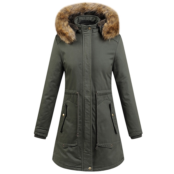plush lining and faux fur spliced hooded silhouette design can keep you warm and comfy
