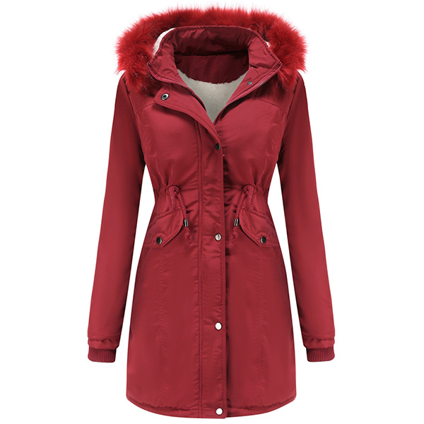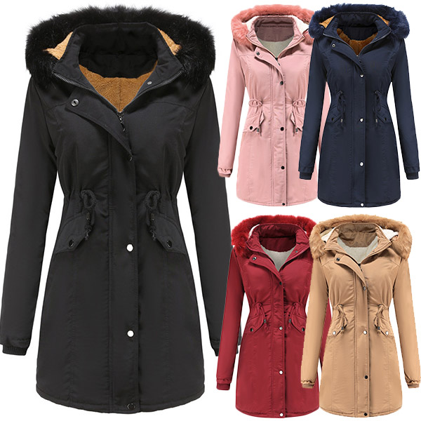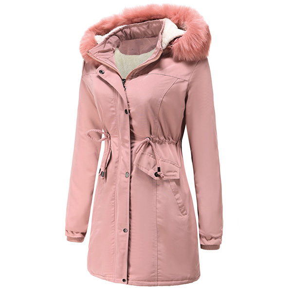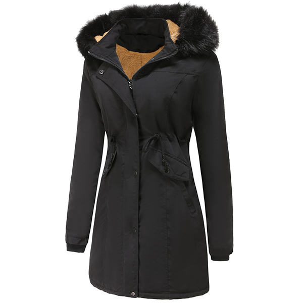 When the days get chilly,you can just slip into this padded coat to stay warm. Solid color style,the faux fur spliced hooded silhouette and plush lining design can give you a warm and comfortable day,while the drawstring waist and fit silhouette design still can showcase your figure. Your perfect choice in these cold days.