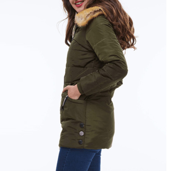 Hey,girls,you can invite this padded coat to get prepared for the chilly days. Solid color style,finished with long sleeve,faux fur spliced hooded and a fit silhouette,this piece not only can give you a warm and comfortable day,but also can portray your figure. It is worth to be a staple in these cold days.