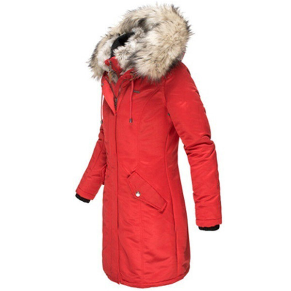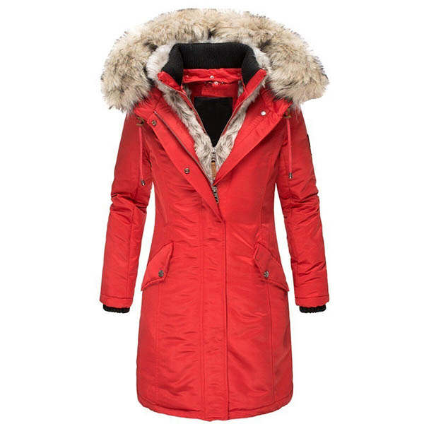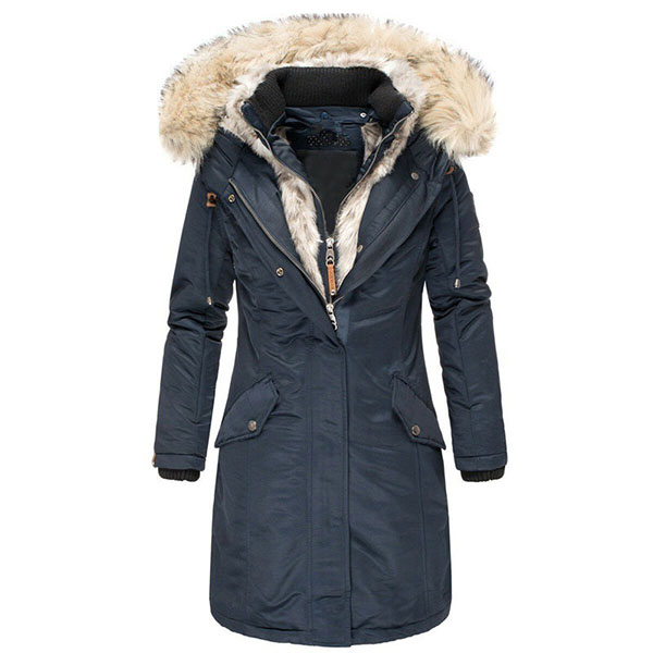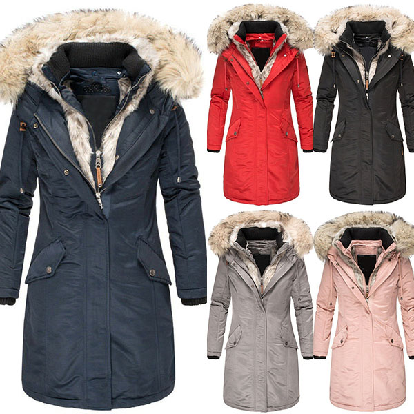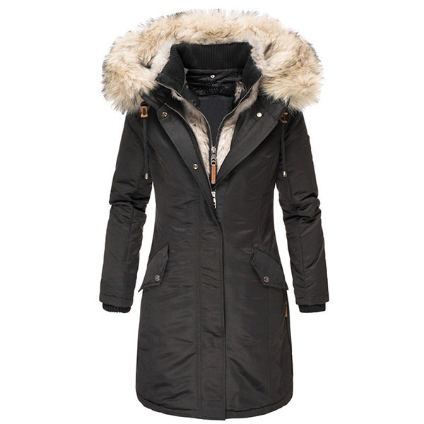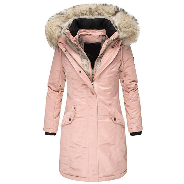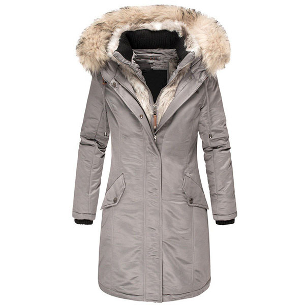 Fashion Solid Color Faux Fur Spliced Hooded Slim Fit Padded Coat