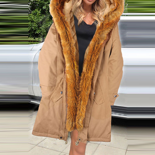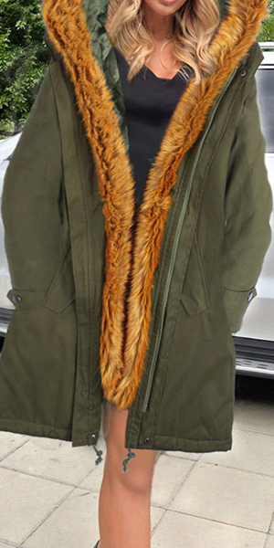 with long sleeve and hooded design,classic and stylish. And faux fur spliced design