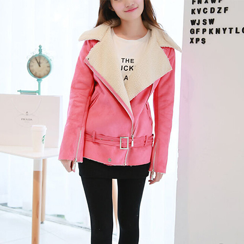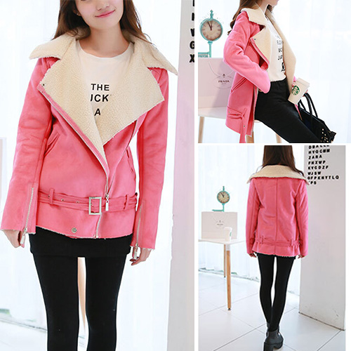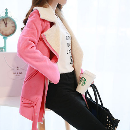 Wanna spend a warm and wonderful winter? This coat can help you. It is crafted from faux suede fabric and faux wool lining,warm and comfortable to wear. Solid color,lapel,oblique zipper and waistband style hemline design,making it more elegant and chic.