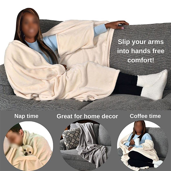 This cozy and chic wearable blanket is perfect for snuggling up on the couch or taking a nap. The blanket is machine washable for easy care.