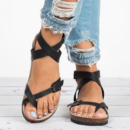 As a summer essential,this pair of sandals can be your new favourite. Outfitted with flat heel and anti-slip sole,this pair of sandals can give you a very comfortable wearing experience. Moreover,the crossover design makes it look more attractive. Dress it up with your fashion outfits.