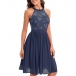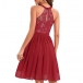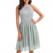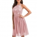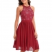 Fashion Solid Color Floral Lace Spliced Chiffon Mini Dress