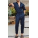 Fashion Solid Color Front Button Long Sleeve Drawstring Waist Jumpsuit for Men