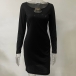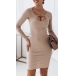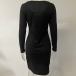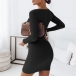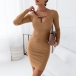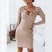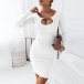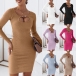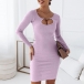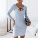 Fashion Solid Color Front Cutout Chain Round Neck Long Sleeve Bodycon Ribbed Dress