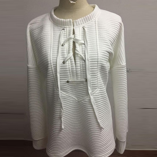 Fashion Solid Color Front Lace-up Long Sleeve Loose-fitting Sweatshirt For Women