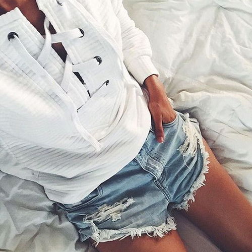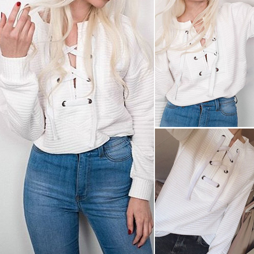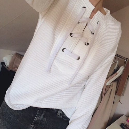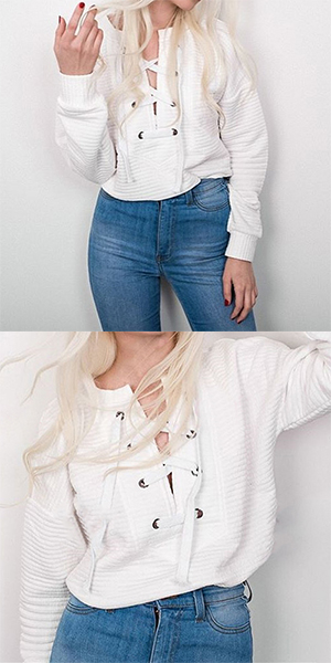 A simple and fashion creation, this sweatshirt boasts solid color, long sleeve and front lace-up design,