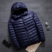 Fashion Solid Color Front Zipper Long Sleeve Hooded Quilted Down Coat for Men