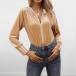 Fashion Solid Color Front Zipper Long Sleeve Hoodie Bodysuit