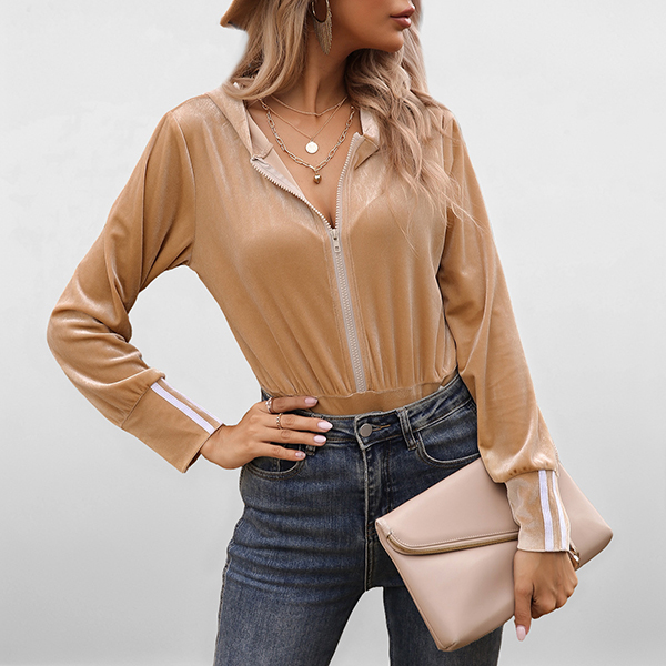 This bodysuit combines casual hoodie comfort with sleek bodysuit styling. The front zipper creates sporty edge whilst the solid colour design ensures versatile wardrobe coordination. The hoodie styling brings relaxed appeal with comfortable coverage. Layer under denim jackets with high-waisted jeans for street style edge. Perfect for casual outings, gym sessions, or relaxed weekend wear.