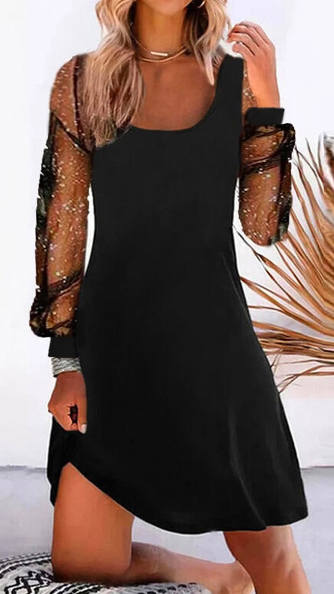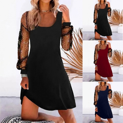 Solid color dress with gauze spliced long sleeve, add some chic element to this dress. Multicolor available.
