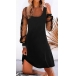 Fashion Solid Color Gauze Spliced Long Sleeve Dress