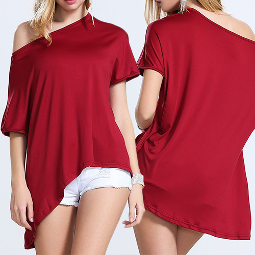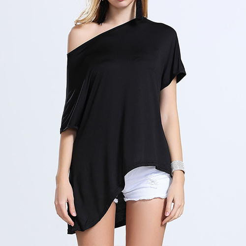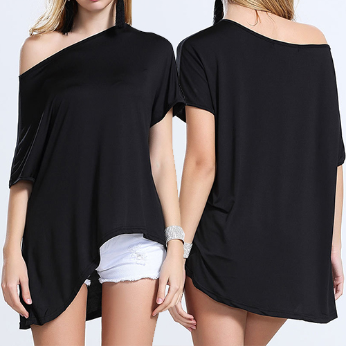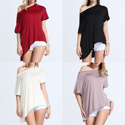 your wardrobe essential. Solid color style,with half sleeve and an irregular hem,chic