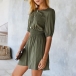 Fashion Solid Color Half Sleeve Round Neck High Waist Romper