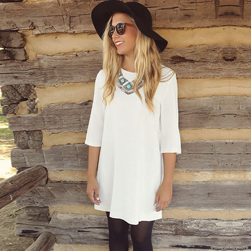 Show your stylish and charming style in this shift dress. Solid color style,with half sleeve and