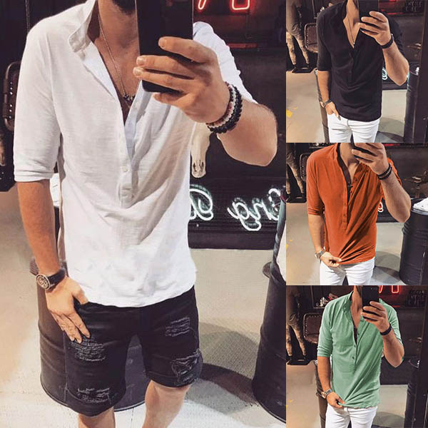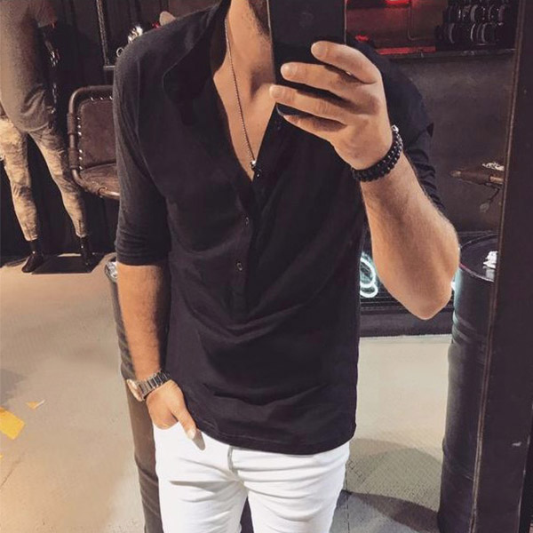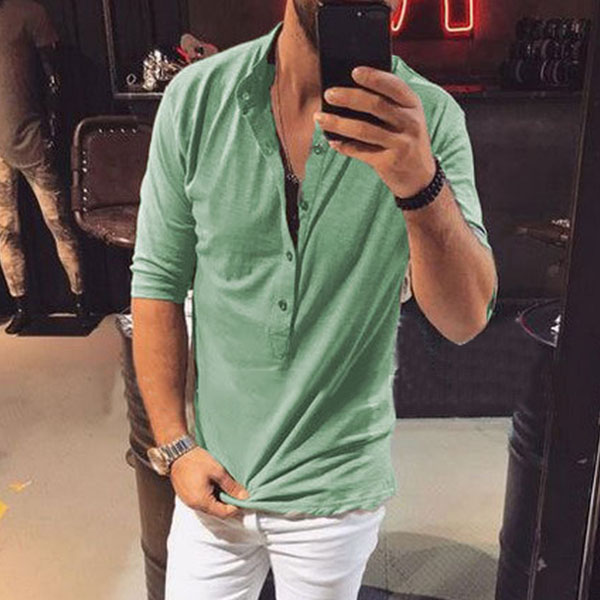 finished with half sleeve and stand collar design,this t-shirt can offer you a laid-back,fashionable