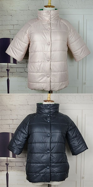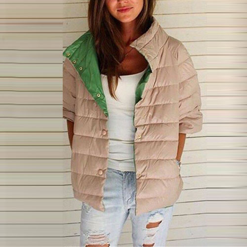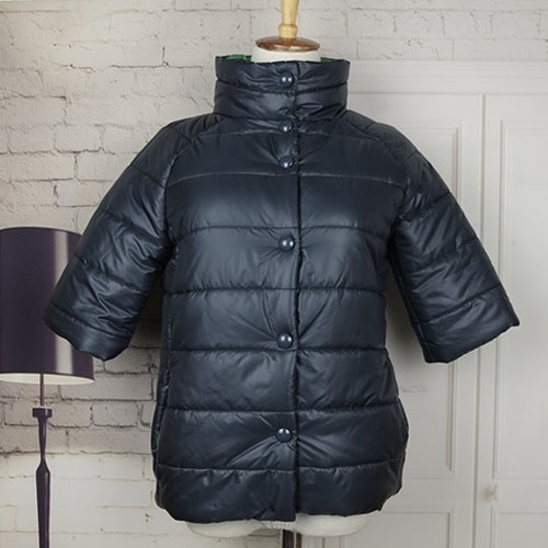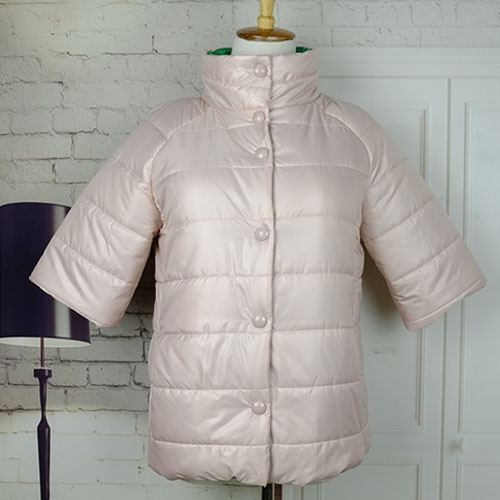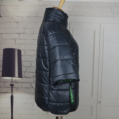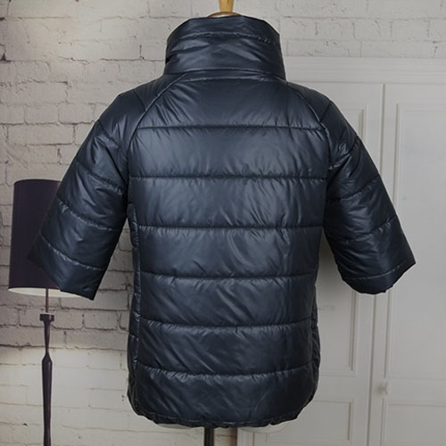 This padded coat features solid color style,with half sleeve and stand collar design,stylish
