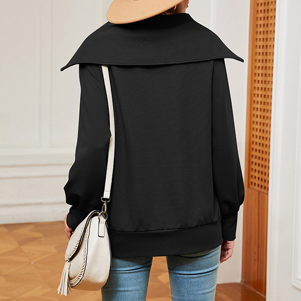 Featuring a half-zip design and lapel collar, this sweatshirt offers a modern and chic silhouette. The solid color design adds simplicity and versatility, making it easy to pair with various bottoms and accessories.