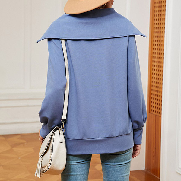 Fashion Solid Color Half-zip Lapel Sweatshirt