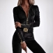 This jumpsuit features half-zip V-neckline adds a modern and trendy touch to the jumpsuit, creating a flattering and elongating effect. The long sleeves with zipper design add some chic element. Crafted from high-quality velvet fabric, this jumpsuit is designed to be soft, comfortable, and luxurious.