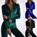 Fashion Solid Color Half-zip V-neck Long Sleeve Velvet Jumpsuit
