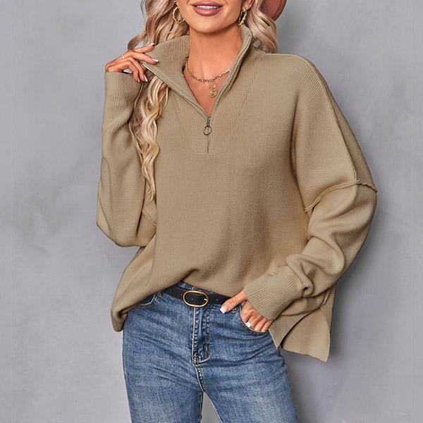 Fashion Solid Color Half-zipper Long Sleeve Sweater