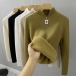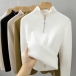 Chemise à manches longues en côtes avec doublure en peluche, couleur unie, demi-fermeture éclair et col montant