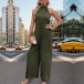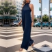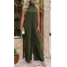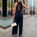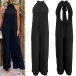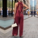 This jumpsuit features a solid color palette, a halterneck silhouette, a dramatic backless design, and a straight-leg cut. Multi-colors avabile.