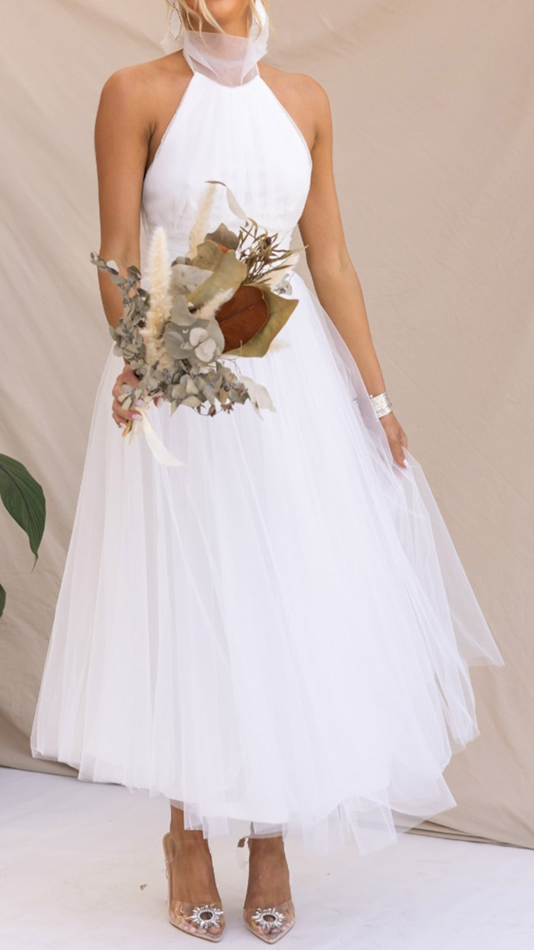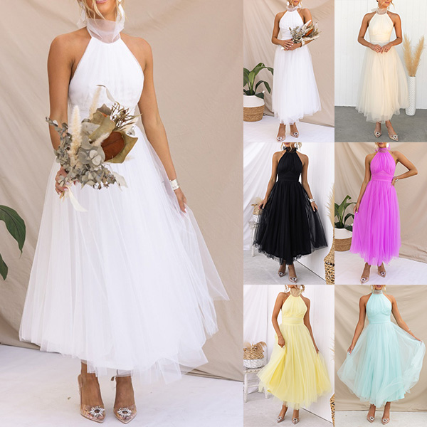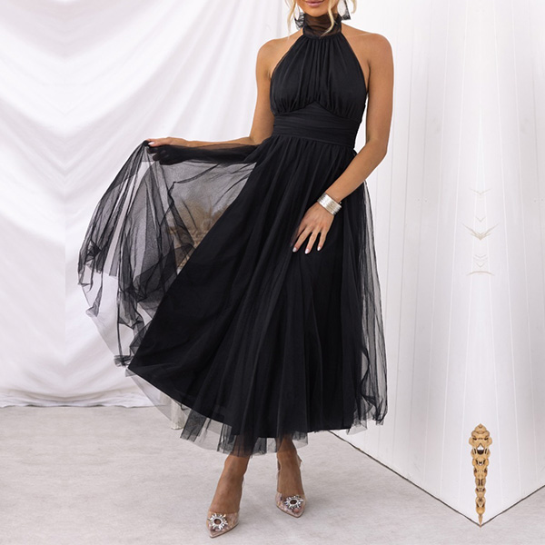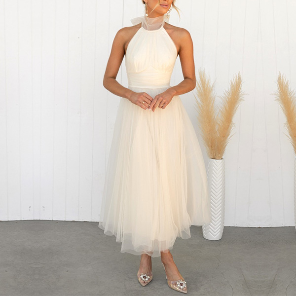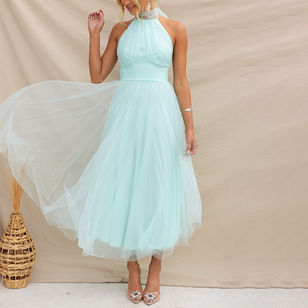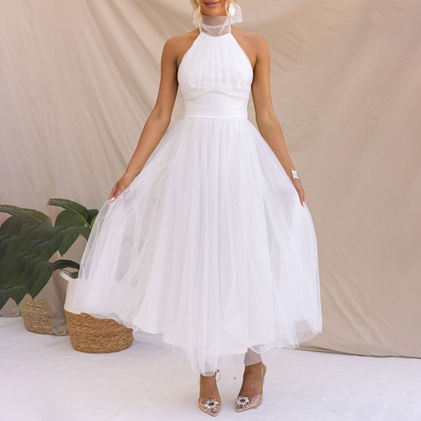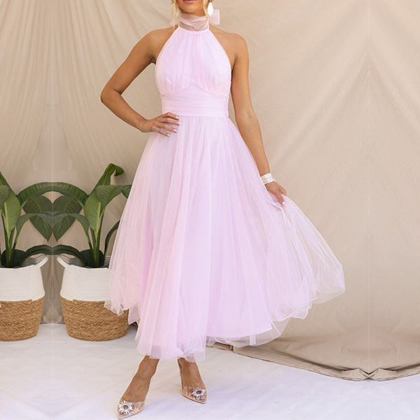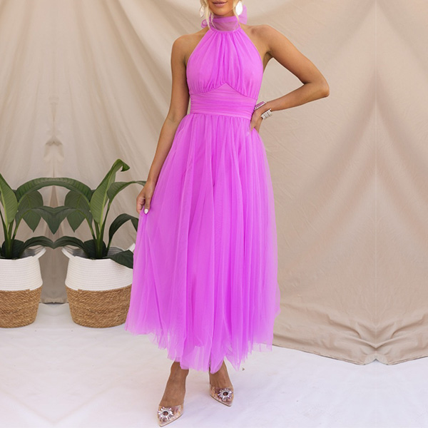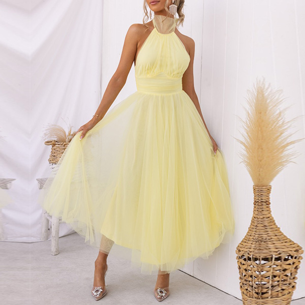 Fashion Solid Color Halterneck Backless Sleeveless Tutu Gauze Dress