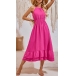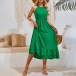 This dress falls at a midi length, hitting below the knee for a modest yet fashionable look. Crafted with high-quality materials, this midi dress offers both style and comfort. The solid color design adds a timeless and versatile element to the dress, making it suitable for various occasions and easy to style.