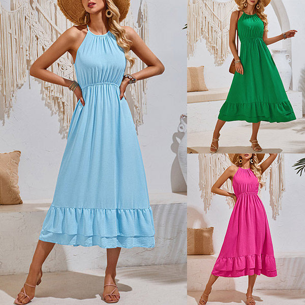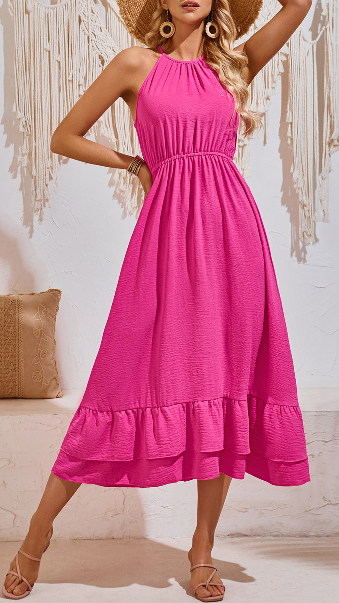 Fashion Solid Color Halterneck High Waist Midi Dress