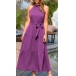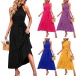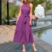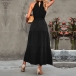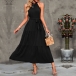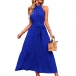 Fashion Solid Color Halterneck Sleeveless Self-tie Tiered Dress