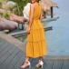 This dress is perfect for various occasions, from daytime events to date nights or casual outings where you want to make a statement. The self-tie detail at the waist cinches in your figure, creating a flattering silhouette and adding a modern twist to the dress. The tiered skirt adds a playful and romantic element, creating movement and adding a flirty flair to the overall look. Wanna have a try?