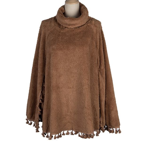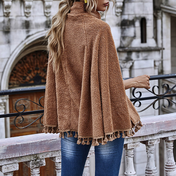 Fashion Solid Color High Collar Tassel Hem Cloak