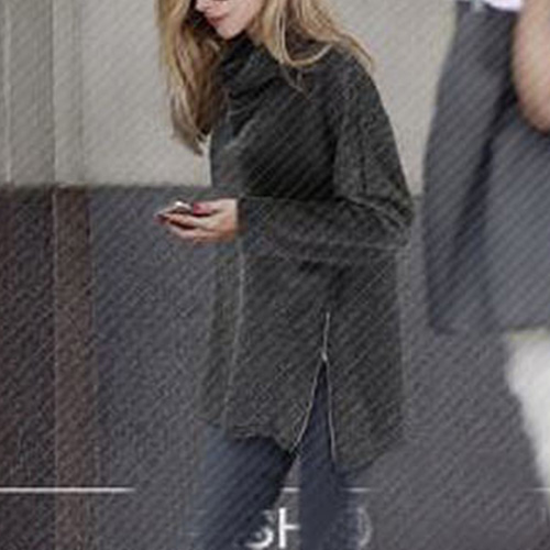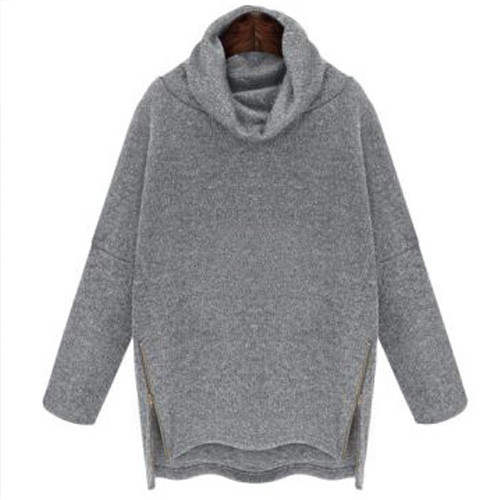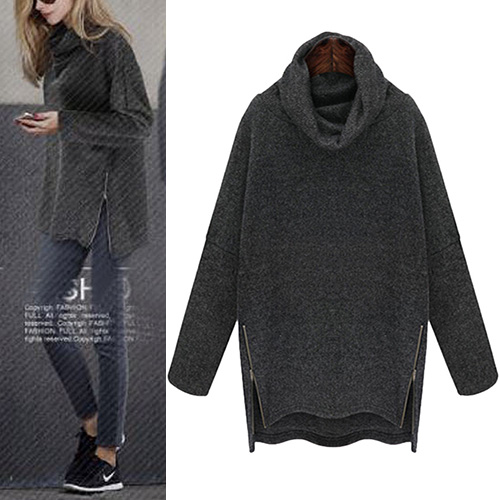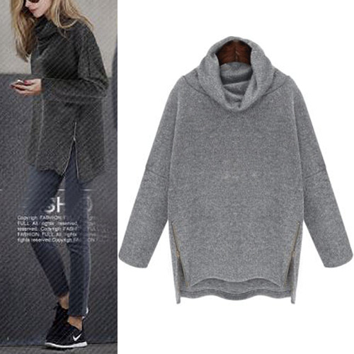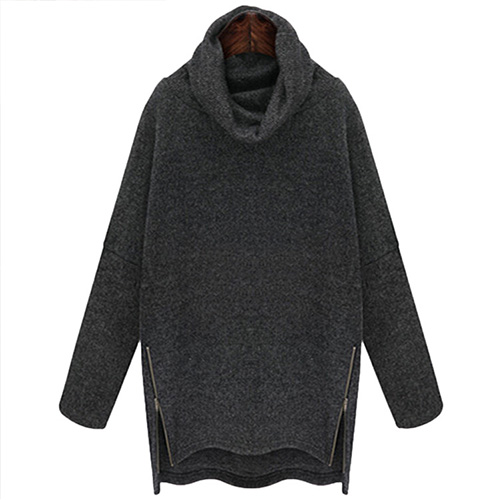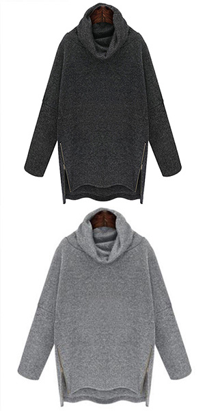 refined designs such as turtleneck,high-low hem,hem with zipper design make this number attractive