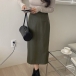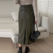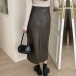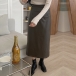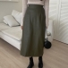 Fashion Solid Color High-rise Artificial Leather Maxi Skirt